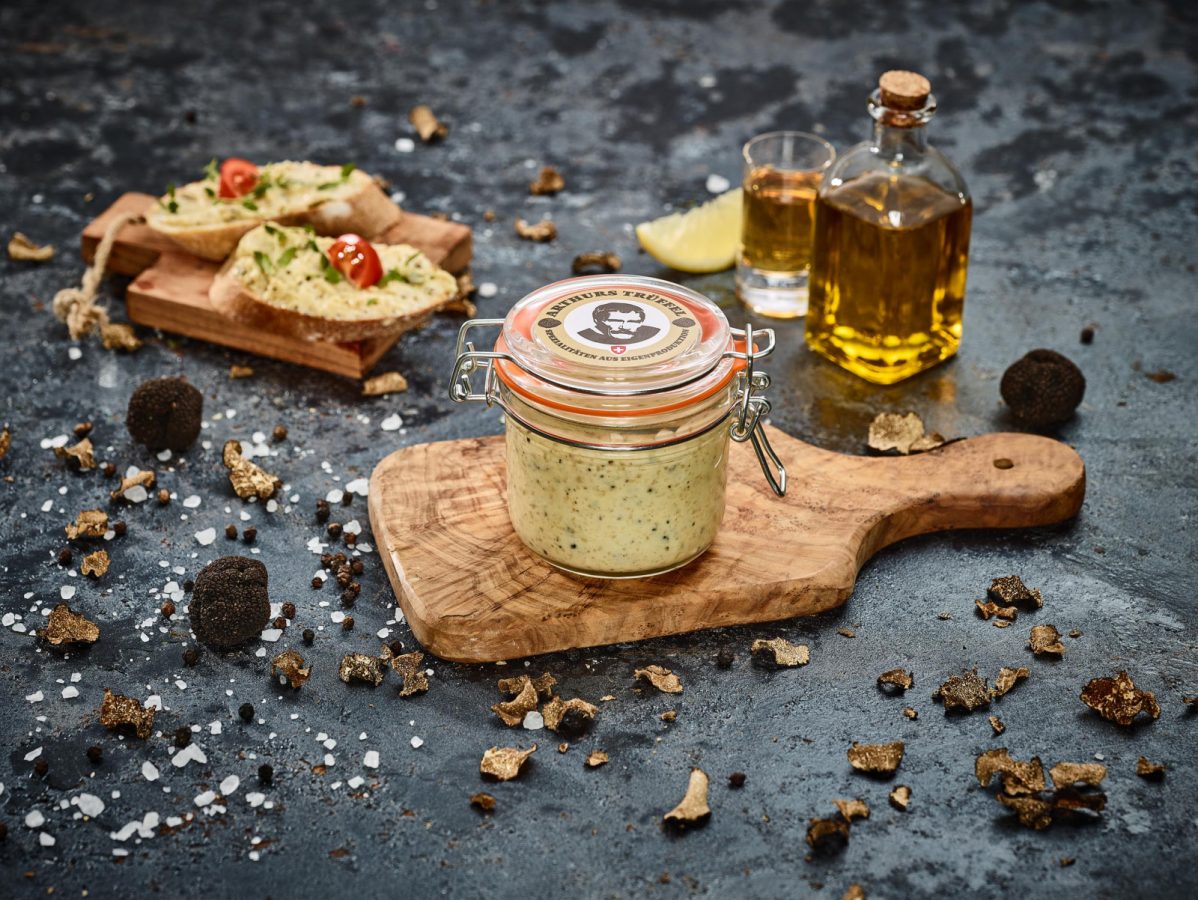 Die Trüffelbutter wird im Herzen des Bernerlands in der Schweiz produziert. Die Verwendung regionaler Zutaten ist ein wichtiger Bestandteil des Herstellungsprozesses.